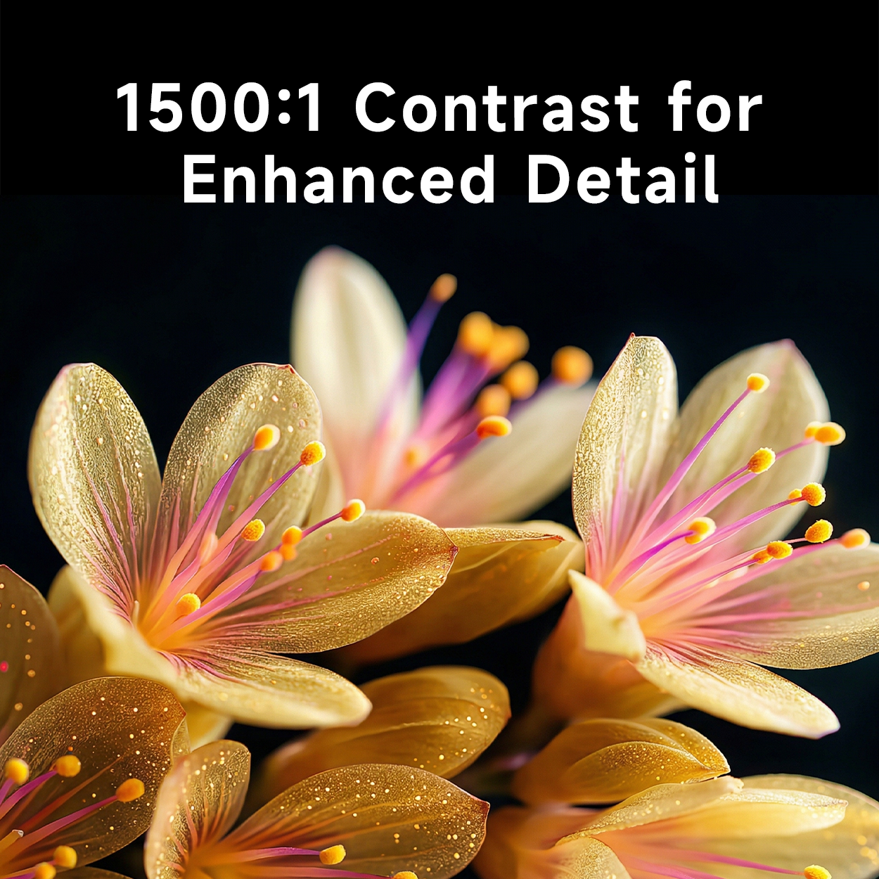 1500:1 High Contrast Ratio With a 1500:1 contrast ratio, enjoy richer blacks, brighter highlights, and more defined details in every scene. From dark shadows to bright highlights, every element appears clearer and more lifelike.