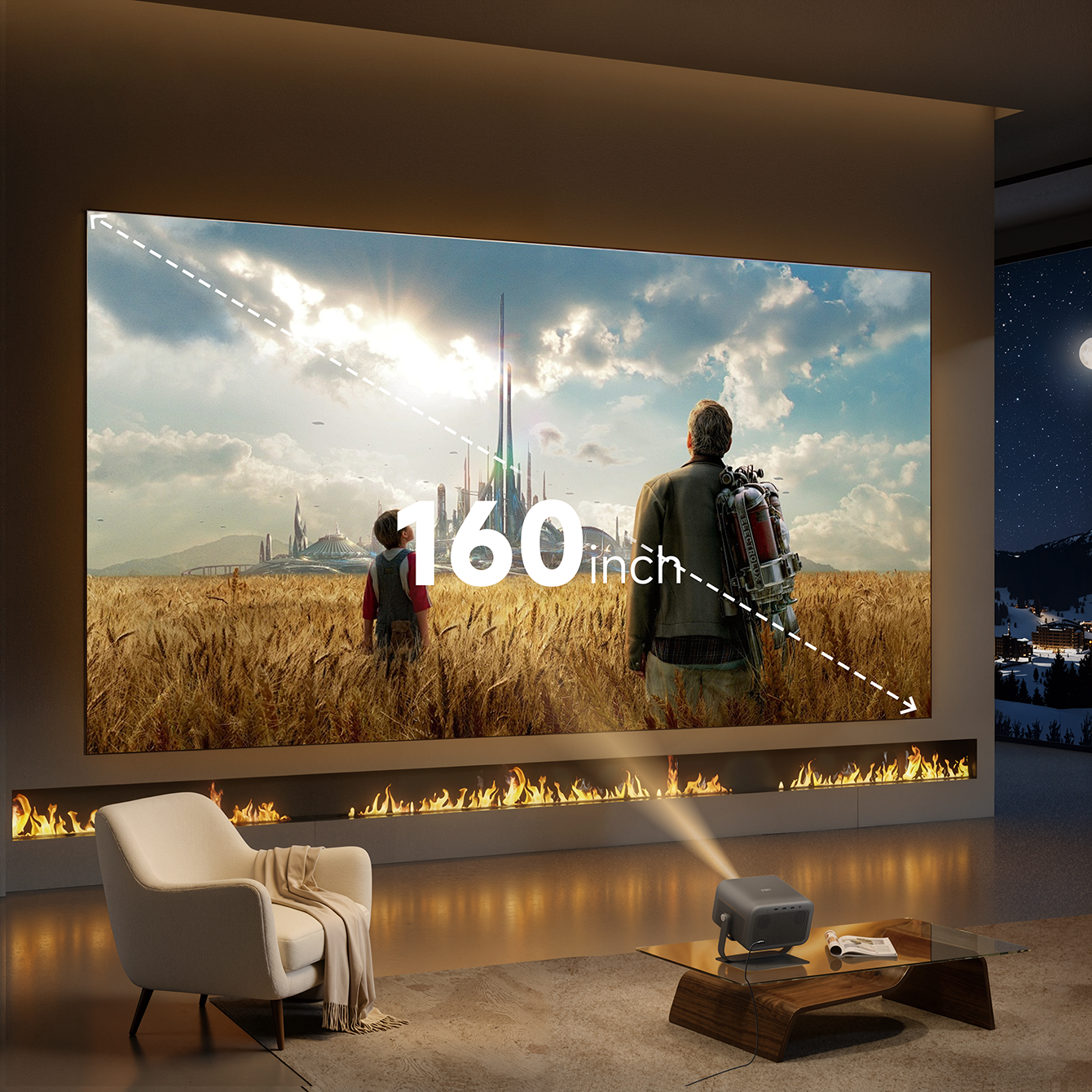 Turn Any Space Into a Private Cinema Enjoy a flexible projection size from 40 to 160 inches, perfect for everything from casual viewing to full cinematic immersion—whether in your bedroom or living room.